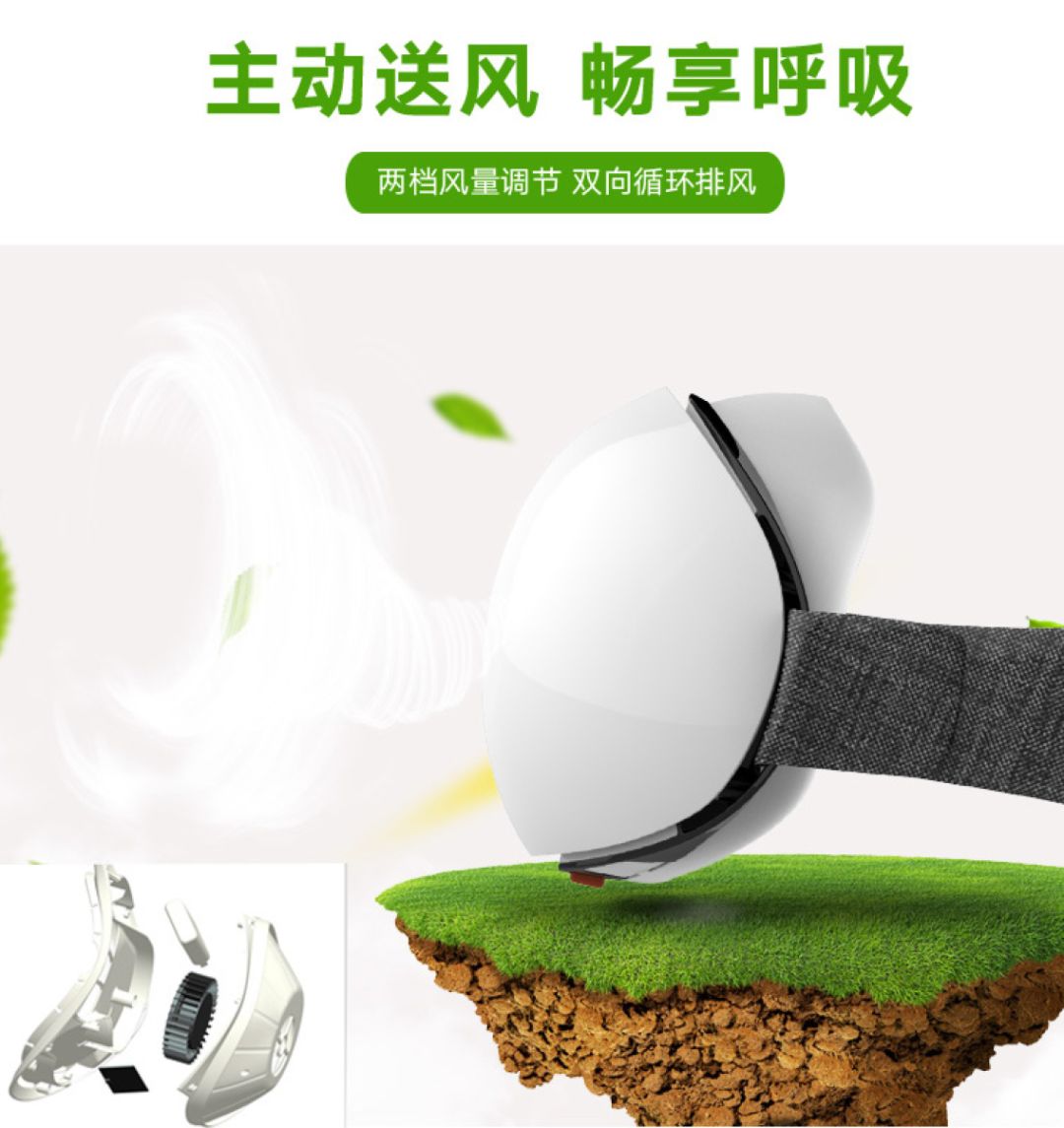 这款口罩最大的卖点就是电动力防护,通过涡轮动力取代肺部被动呼吸 ,按照人体风量需求,在口罩内循环流动,从此告别戴口罩憋闷、缺氧的情况。