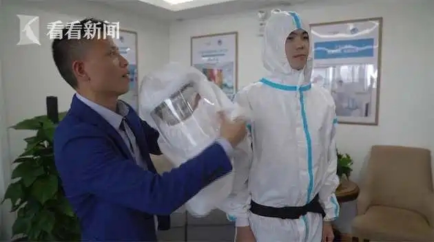 “我们这个医用防护系统它有两个特点,第一个就是密闭性特别好,能更好地保护我们的医护人员,第二个是我们会有一个正压防护系统,它可以每时每刻能保证新鲜的空气 到达医护人员的防护服里面。”