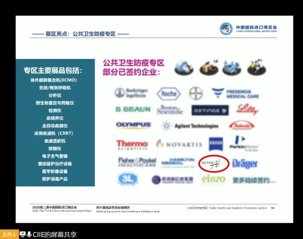 与往届不同,第三届中国国际进口博览会首设“公共卫生防疫专区”,德国Active Air以在新冠肺炎“战疫”中做出突出贡献,相关产品得到广泛应用的医疗器械企业,被选入“公共卫生防疫专区”。