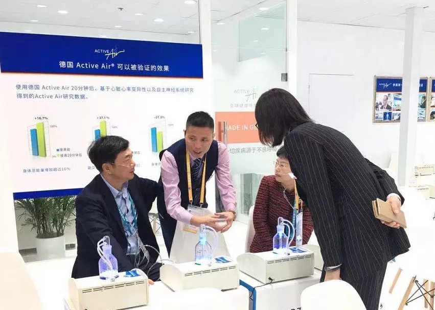 第二届进博会现场,德国Active Air展示了健康呼吸领域的最新研究成果:一切疾病源于不良呼吸,细胞内能量含量多少,才决定着人是否健康,而细胞内的能量多少完全取决于呼吸的质量,德国Active Air一项让呼吸更有效率的技术,不增加氧气的供给,而是优化了利用率,从而为细胞提供能量。这一成果利用来自于体内的能量—用质量代替数量。